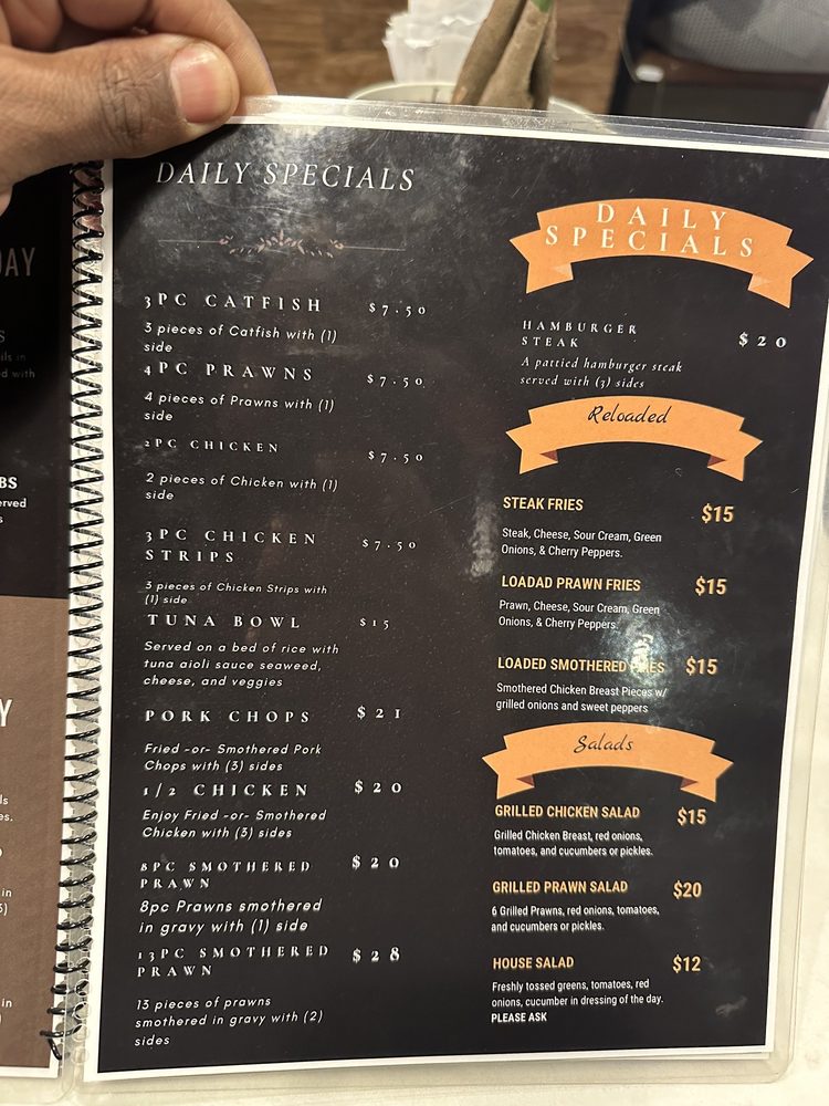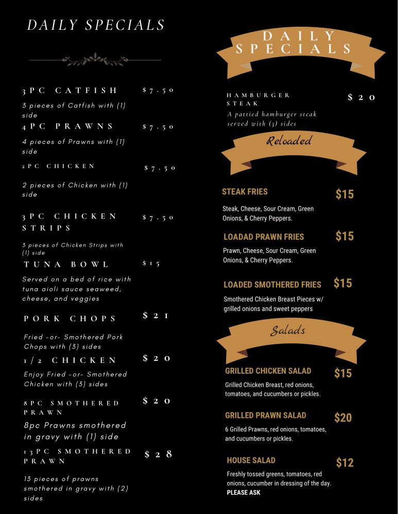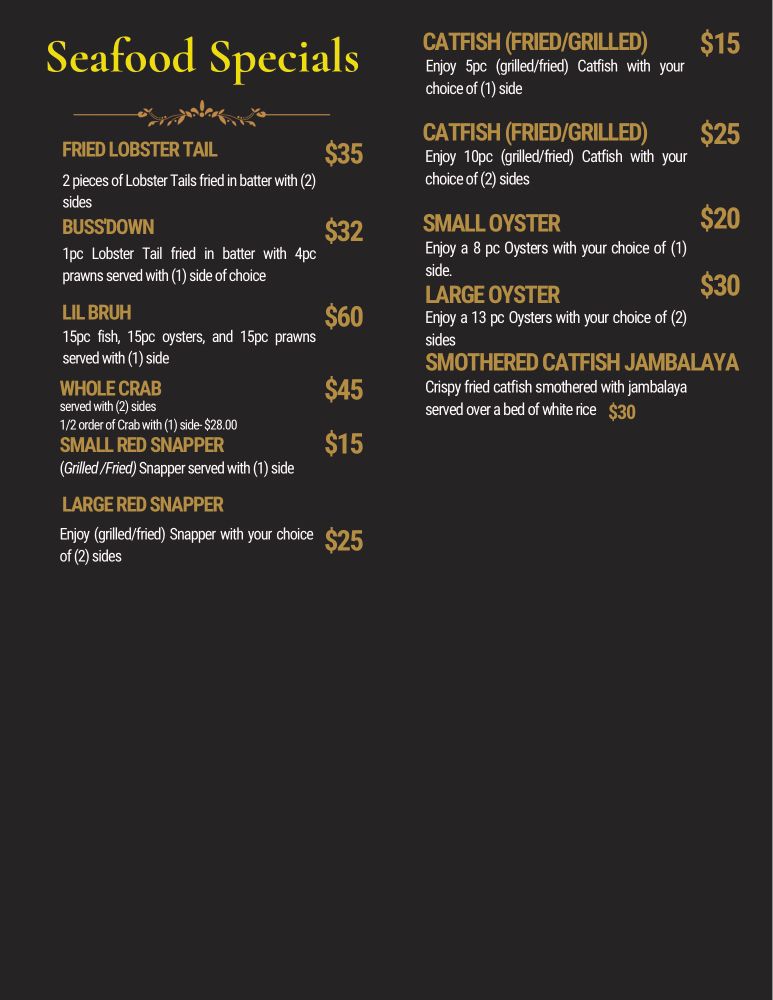 2 pieces of lobster tails fried in batter. Served with your choice of 2 sides.